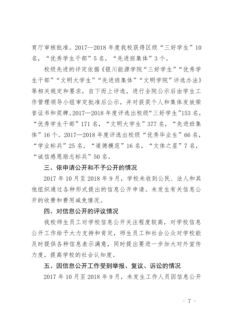 银川能源学院2017-2018学年度信息公开工作年度报告